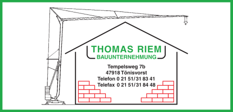 Die THOMAS RIEM BAUUNTERNEHMUNG hat sich bis heute zu einem der gefragtesten Bauunternehmen im Kreis Viersen, Krefeld, Neuss und Wesel entwickelt.
